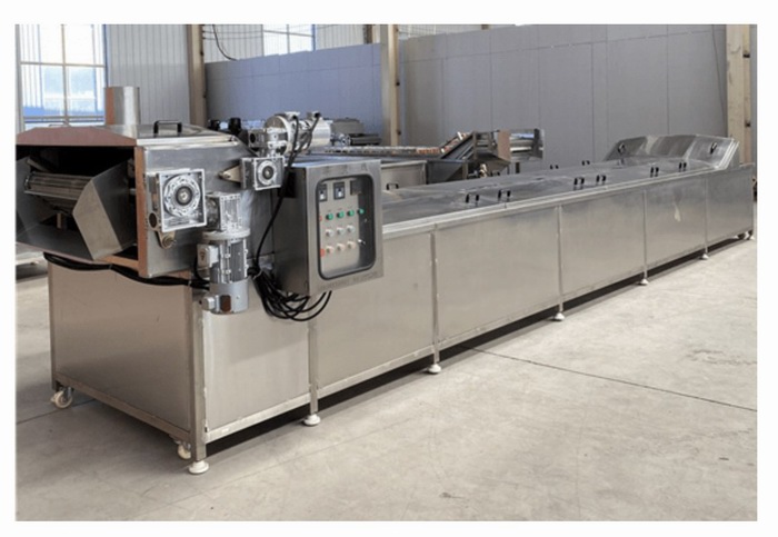 玉米冷却机是经过漂烫后,冷却是必须的一环,由于温度过高回事玉米粒水分丢失出现褶皱,影响玉米的外观,经过玉米冷却机能迅速的将玉米在冷水里面浸泡3-5分钟左右,让玉米降温,保证在装袋的时候,温度能达到50度左右即可,如果温度过高,在真空包装后,会出现雾化气体,装袋时要把好关,产生雾化气体影响玉米的品质,包装过程要将玉米迅速的装入包装中,包装袋封口处不能有玉米液体之类的东西,这样会在封口的时候出现不必要的麻烦。包装袋封口时,有残留物是无法封住的,所以一定要注意
